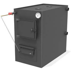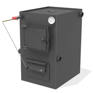 Котёл имеет чугунную загрузочную дверку, варочную поверхность изготовленной из стали, толщиной 10 мм, с чугунными конфорками. Котёл оснащён надёжным и долговечным чугунным колосником, что увеличивает срок эксплуатации котла. В качестве визуального контроля температуры воды в котле комплектом поставки предусмотрен термометр. Для удобства подключения к системе отопления котёл оснащён универсальным расположением элементов подключения, в комплекте с резьбовыми заглушками.